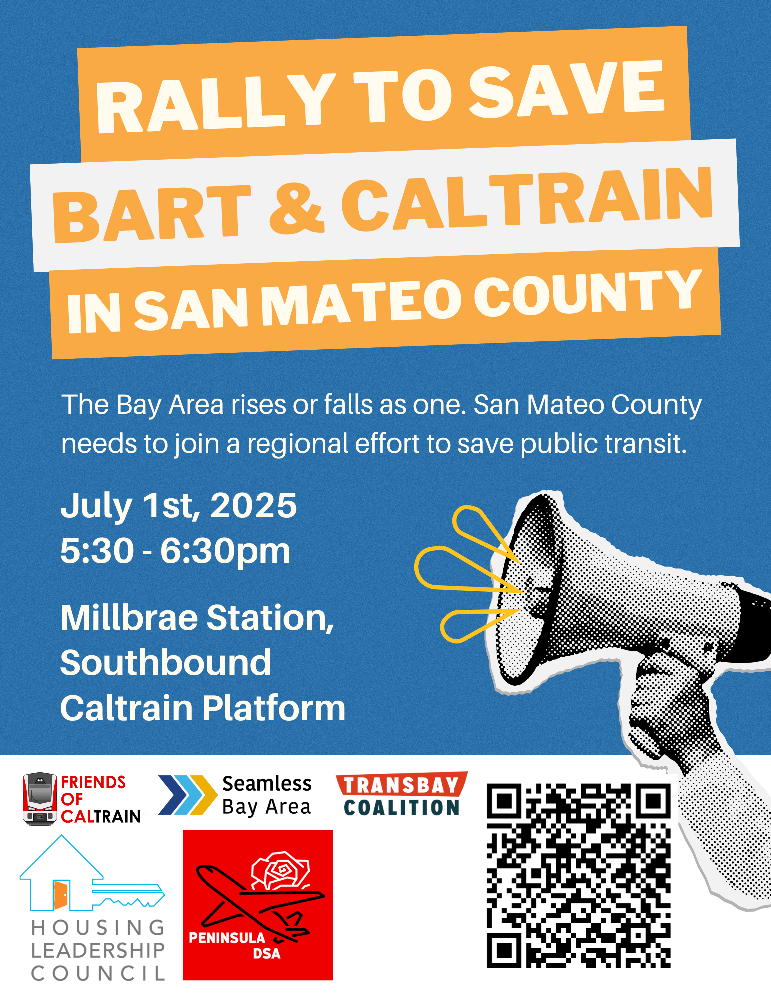 What’s the catch? The original funding proposal for SB 63 is a 1/2 or 1/4 cent sales tax that would hit working people in San Mateo County hard AND fail to raise enough revenue to prevent service cuts, given rising inflation and arbitrary tariffs. That’s why transit operators, activists, and SamTrans Directors David Canepa and Jackie Speier are still recommending a gross receipts tax on businesses, a solution which has 61% support from likely voters! A progressive tax of 0.012% on the top 2% of businesses would transform our public transit across the county, but Chair Jeff Gee and Assemblymember Diane Papan appear to be more interested in protecting business interests than in improving service to meet riders’ needs. The California Senate has until September 12 to approve the bill with any last-minute amendments, so we’ll continue to contact our rep Senator Josh Becker to push for a gross receipts tax to secure maximal funding for SamTrans and San Mateo County.